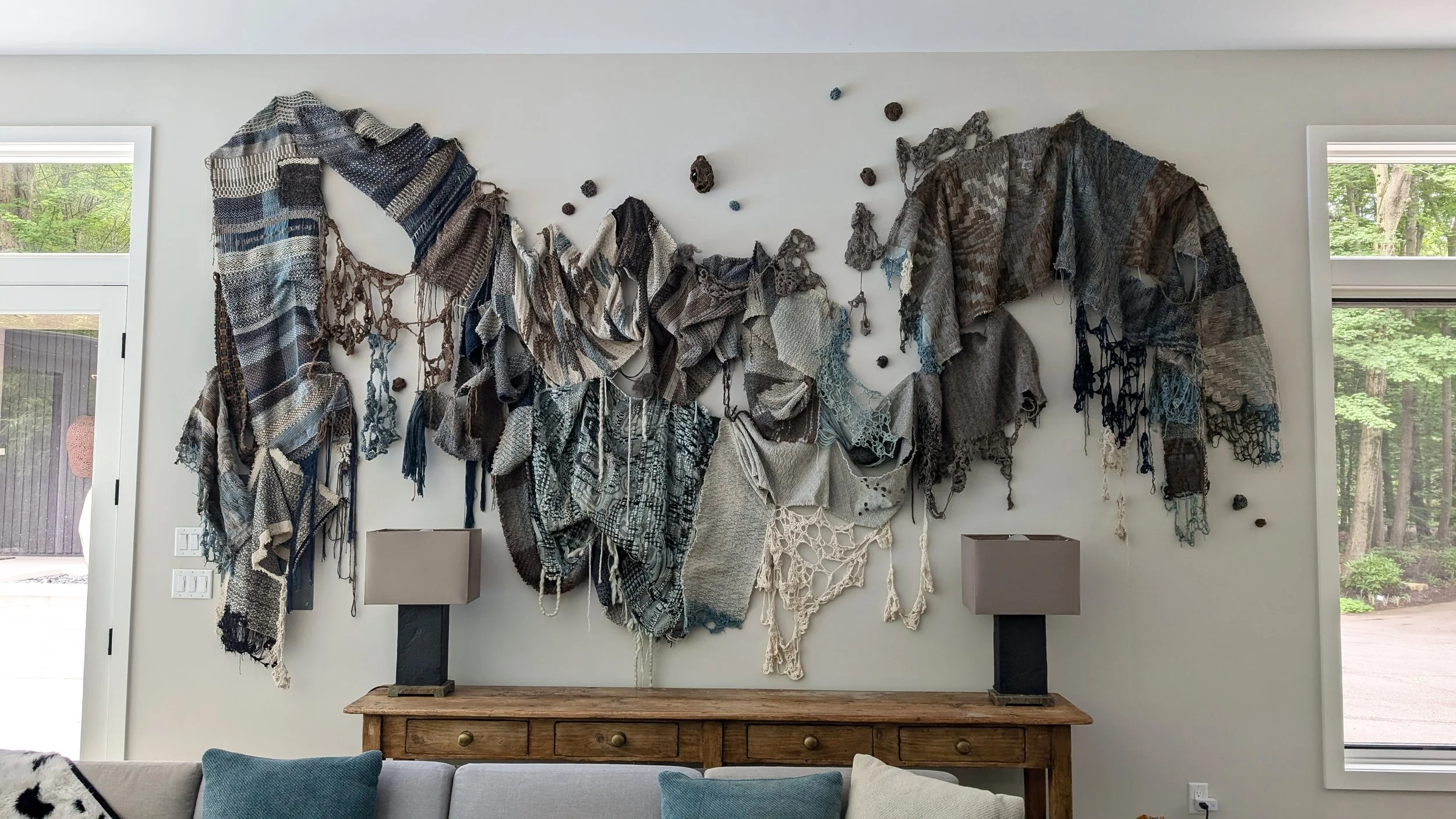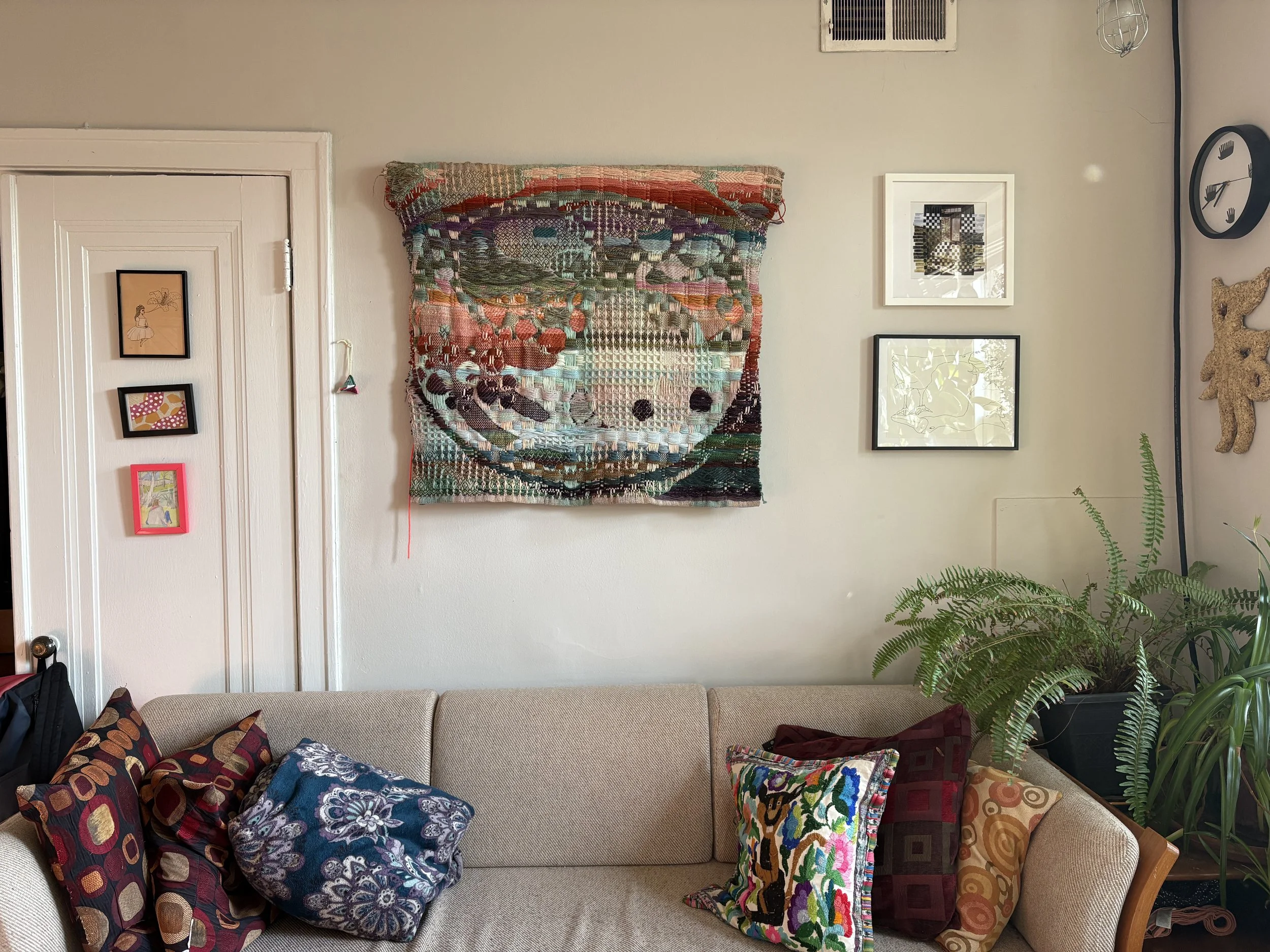 My goals as textile artist and wool producer are to celebrate interconnectivity, moments of slowness, touch, and the satisfaction I find in the materiality of fibers. Combining my practice as a weaver with my lifestyle as a small-scale shepherd allows me to engage in holistic practice that brings natural and second-hand materials through the entirety of their life cycle. Thoughtful collection of discarded fiber stashes, environmental practices around dyes, and supporting local wool production allows me to invite others into this practice through conversation, workshops, community, and other events. I create woven abstractions of living communities and networks so that people may slow down and reflect on physical processes and material sources to better appreciate what they cannot see. Source imagery that inspires these abstractions often comes from microbial communities that aggregate during the fermentation process; these tiny communities facilitate the recycling of all the basic materials in our world, which I find both inspiring and fascinating. Through playful uses of color, pattern, and textures, I hope to pass my sense of awe on to the viewer while at the same time creating an object that serves as both a metaphor and a stilled enactment of these processes.
